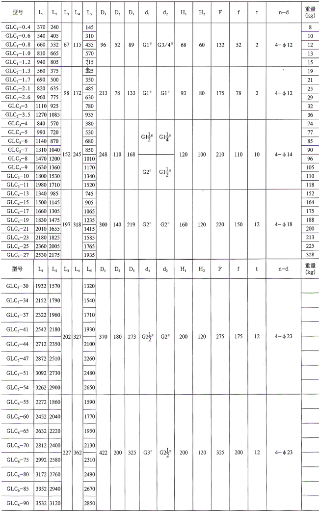 (1)GLC型冷卻器外形圖表