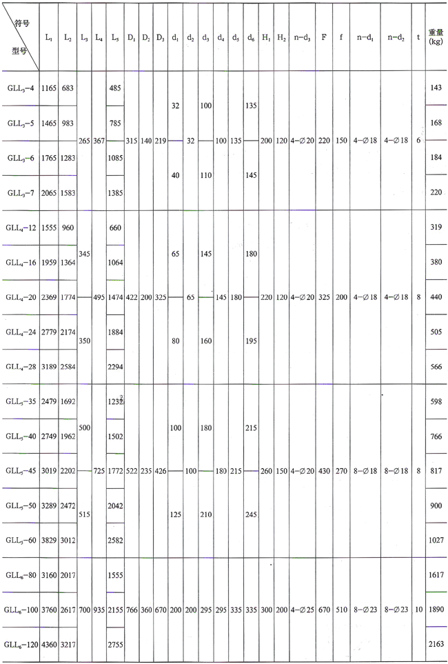 (2)GLL型冷卻器外形圖表
